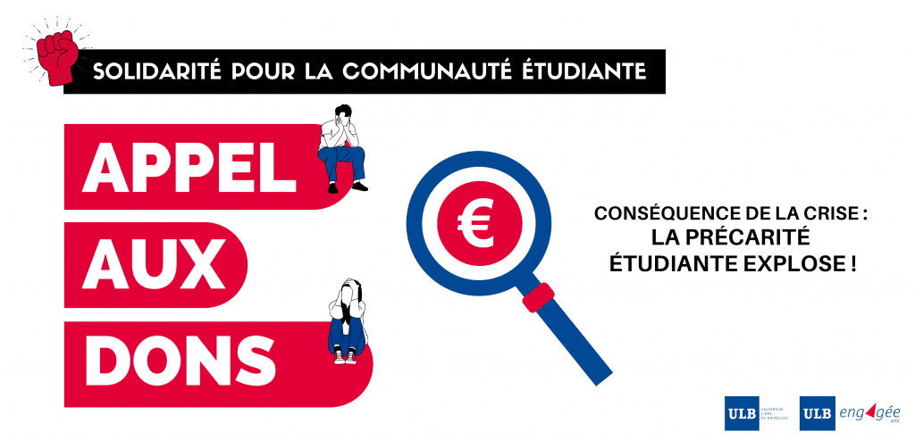 Les mois de crise s’enchainent et l’une des nombreuses conséquences de la pandémie de Covid-19 est l’augmentation significative de la précarité étudiante. Aujourd’hui, c’est 1 étudiant.e sur 3 qui est soutenu.e par l’ULB. Les différents Services d’aides de l’Université constatent que 3.000 étudiant.e.s n’arrivent pas à finaliser dans les temps le paiement du minerval. Et beaucoup trop d’autres rencontrent des difficultés pour leur hébergement ou encore pour les courses alimentaires.