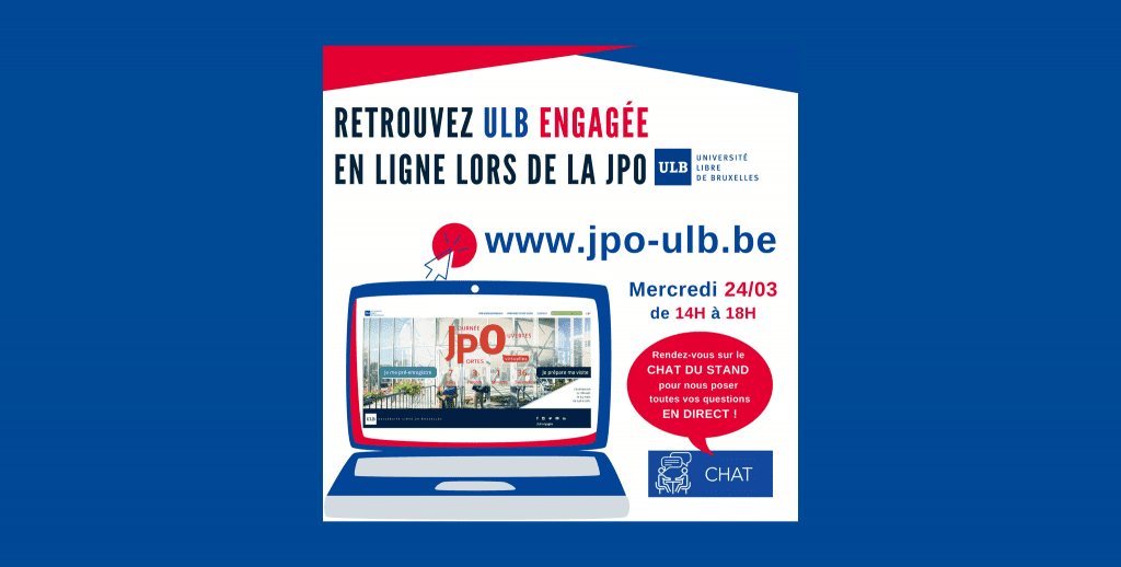 Le 24 mars prochain aura lieu la Journée Portes ouvertes VIRTUELLE de l’ULB. À cette occasion, venez à la rencontre d’ULB Engagée via son STAND VIRTUEL qui vous permettra de découvrir l’asbl et ses nombreux projets et actions soutenues ainsi que de discuter EN DIRECT